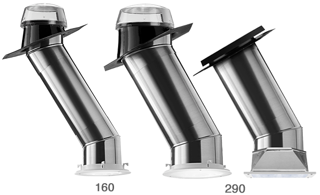 Our daylighting systems offer different tubular daylighting devices (160 DS and 290 DS, 10”- and 14”- wide tubes, respectively, with lengths up to 30’) to fit different applications and space sizes and fill them with natural light. For the larger 290 DS device we also offer a low profile dome for a sleek, unobtrusive look on the roof.
