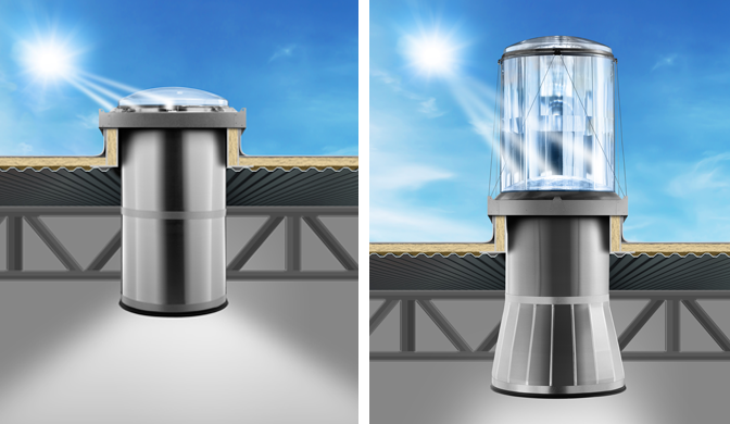 The beauty of the SkyVault is that it's not just one size fits all. With varying combinations of domes and collectors to capture light with tube extensions to transfer it, and an optional Amplifier to deliver it into the building, the SkyVault Series is a flexible, high-output solution for any large-volume space.